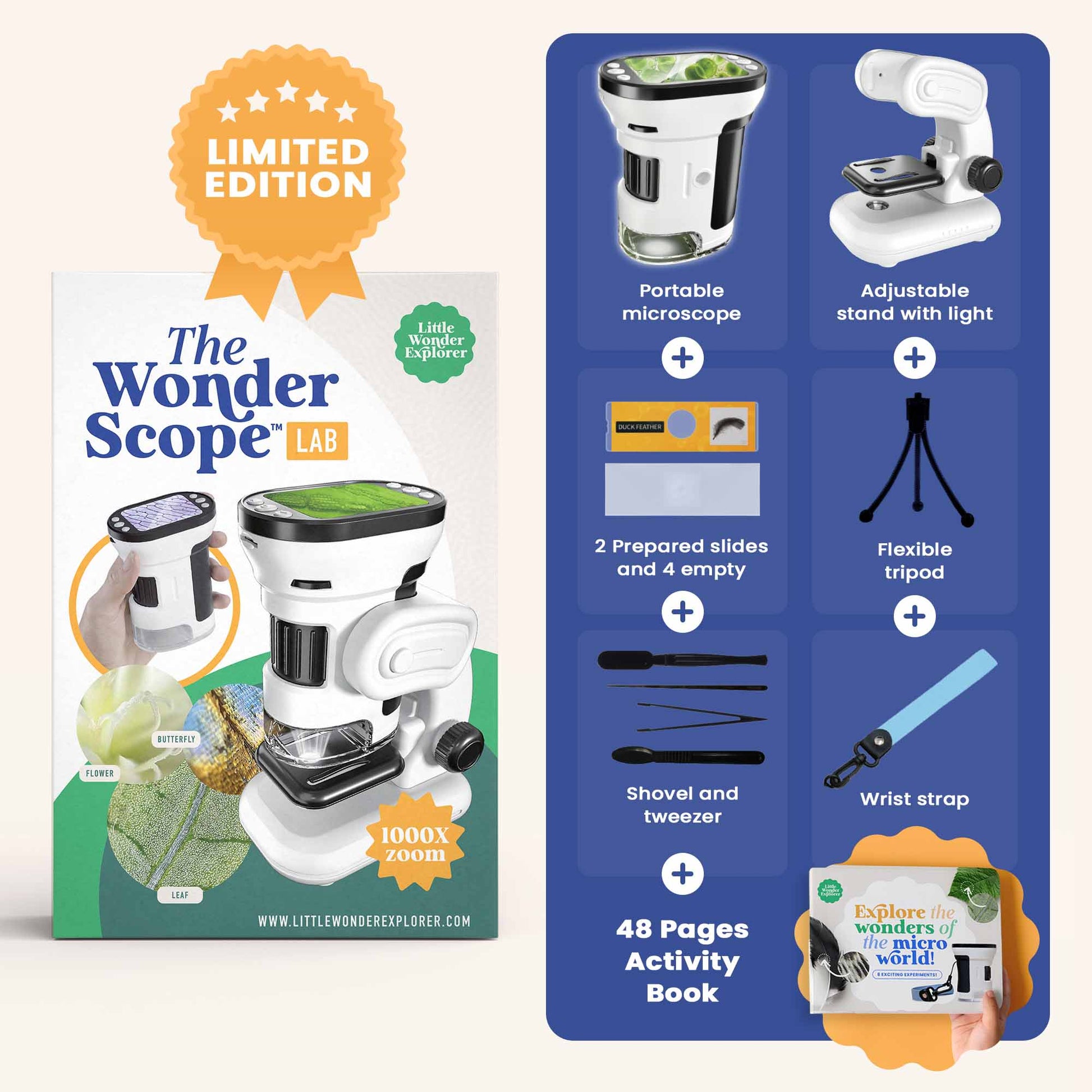 The WonderScope™ is built to be both durable and practical for young explorers. Designed with Premium ABS Plastic, it’s sturdy enough to withstand curious little hands. The high-quality optical lenses are securely protected to ensure long-lasting use.